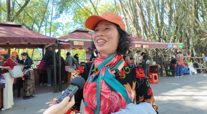 ▲越南游客陈氏明接受广西广播电视台综合广播采访